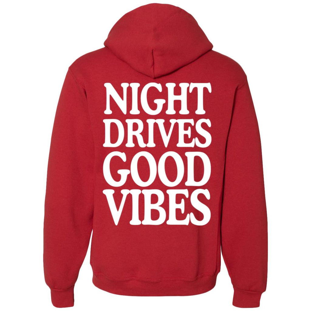 The return of our popular NDGV "Night Drives Good Vibes" hoodie.